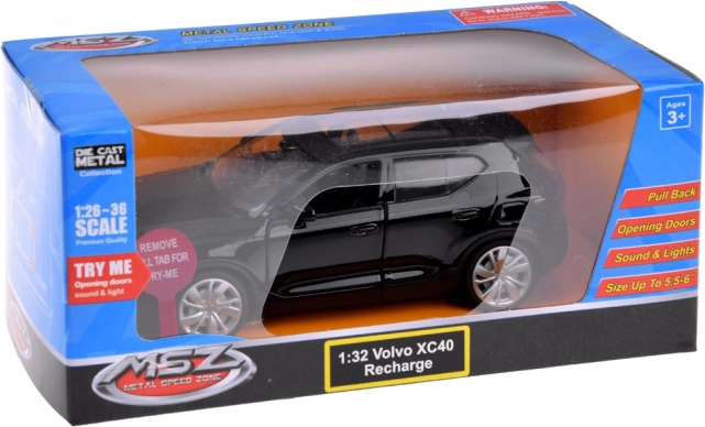 Detailne metallist mudel VOLVO XC40 RECHARGE mõõtkavas 1:32 rõõmustab nii kollektsionääre kui ka lapsi. Sellel on avatavad uksed, realistlikud valgus- ja heliefektid ning tagasikeritav hoorattamehhanism (friction power). Metallkere, kummirehvid ja täpne viimistlus tagavad vastupidavuse ja suurepärase välimuse.