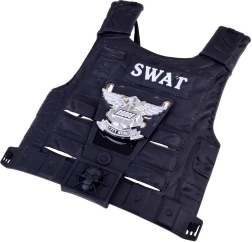 Kerge plastikvest silmatorkava SWAT-kirjaga annab mängule tõelise politseiliku ilme. Lihtne selga panna tänu elastsele kinnitusele seljaosal.