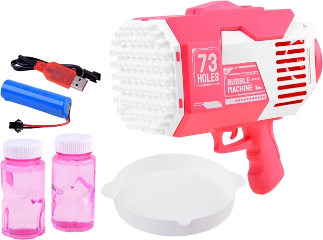 See elektriline mullipüstol loob hetkega tuhandeid vikerkaarevärvilisi mulle. Piisab, kui valada lahus kaussi, kasta otsik sisse ja vajutada päästikut. Tänu USB kaudu laetavale akule on mänguasi alati tegutsemisvalmis ja väldib patareide vahetamist.