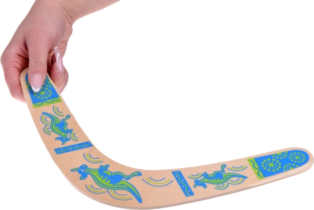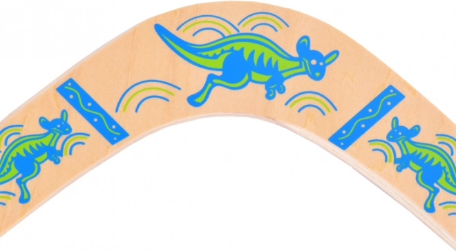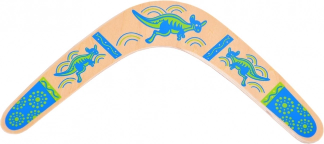 Puidust bumerang on inspireeritud Austraalia traditsioonidest ja kohandatud kaasaegseks vabaajamänguks. Selle tasakaalustatud profiil ja õige pöörlemine võimaldavad õigel viskel naasta viskajani. Värvilised kängurumotiivid lisavad stiili ja parandavad nähtavust õhus.