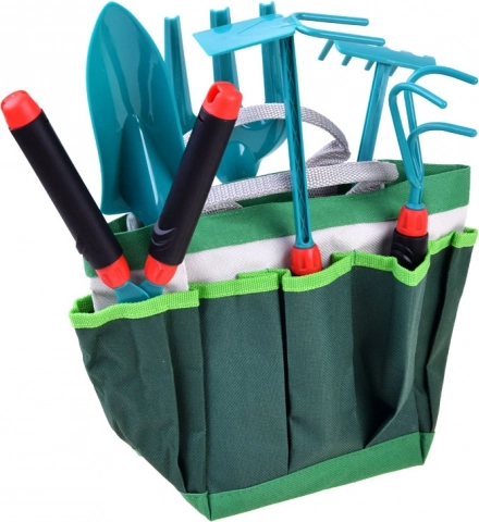 Komplektis on spetsiaalne kott, millega saab kõik tööriistad mugavalt kaasa võtta, nii et vajalik varustus on alati käepärast. Lõbus disain meelitab lapsi aeda, kus nad saavad täiskasvanute järelvalve all loodust avastada ja aiatöid teha.