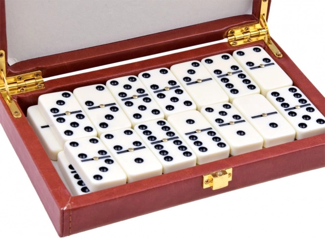 See doominokomplekt on pakitud nahkvutlarisse elegantse servaviimistluse ja metallkinnisega. Tagab ohutu hoiustamise ja lihtsa juurdepääsu.