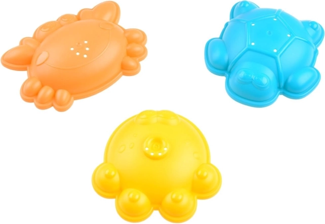 Kolm vormi krabi, kilpkonna ja kaheksajala motiividega pakuvad palju lusti. Igal vormil on augud liiva lihtsaks vabastamiseks.