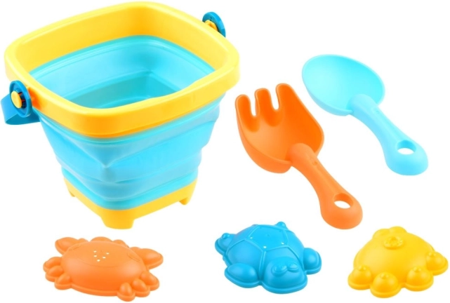 Sisaldab kõike, mida lapsed vajavad loominguliseks mänguks liivas: kokkupandav ämber, labidas, reha ja kolm vormi.