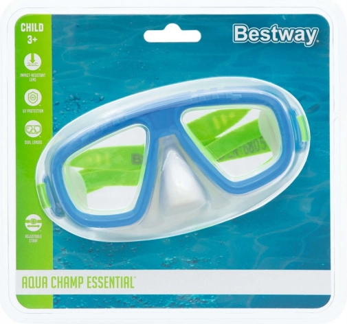 Bestway laste sukelduja mask on mõeldud väikestele seiklejatele alates 3. eluaastast. Tänu topelttihendiga servale istub see näol suurepäraselt ja minimeerib vee sissepääsu. Polükarbonaatklaasid UV-filtriga kaitsevad silmi ja pakuvad selget nähtavust vee all.