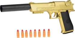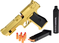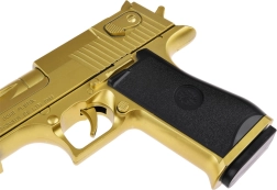 Võta oma mängutegelane ja sukeldu action’isse meie kuldse Desert Eagle’iga. Kvaliteetsest plastist valmistatud atraktiivne mudel pakub realistlikku kogemust tänu autentsele klõpsule ja eemaldatavale salvele – täpselt nagu filmides. Erifunktsioonid hõlmavad: