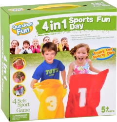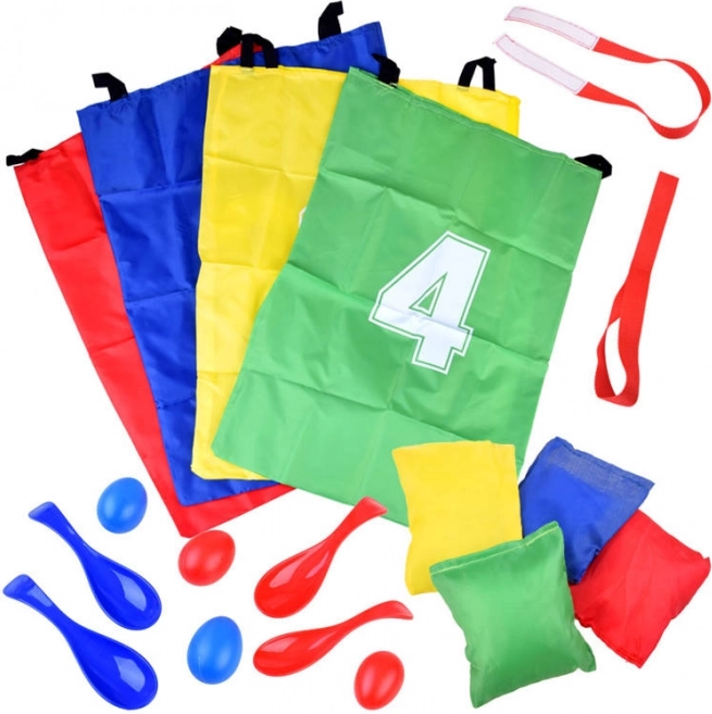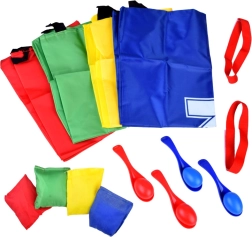 Lõbus komplekt lastele alates 5. eluaastast pakub kuni neli õuemängu ühes – hüppamine kottides, muna kandmine lusikal, liivakottide viskamine ja kahekesi jooksmine seotud jalgadega. Värvilised vahendid toetavad liikumist, koordinatsiooni ja meeskonnatööd, ideaalne sünnipäevadeks, kooliüritusteks ja perepiknikuteks.
