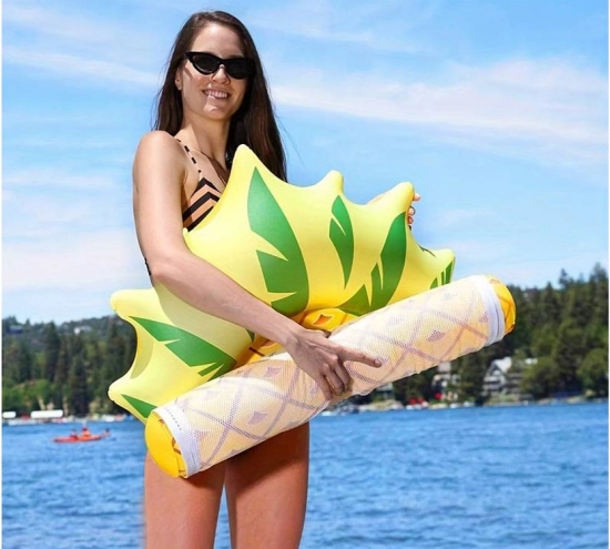„Pineapple“ tüüpi täispuhutav võrk-hammak ühendab lõbusa disaini ja nutika ehituse: kahel küljel õhukambrid stabiilsuseks ning nende vahel tugev nailonvõrk, millel on mõnus lebada. Jääd osaliselt vette, nii et päevitades jahedad end loomulikult.