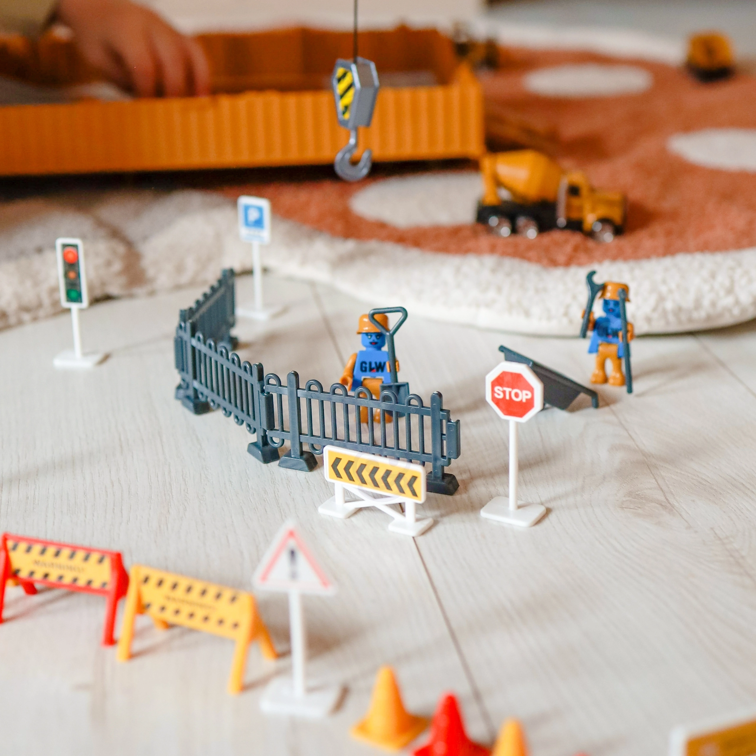 Turvalise ja õpetliku mängu jaoks on kaasas liiklusmärgid, tõkked, koonused ja aiad, et lapsed õpiksid liiklus- ja ehitusalaseid ohutuse aluseid. Komplekt sobib suurepäraselt loovaks mänguks, peenmotoorika ja kujutlusvõime arendamiseks.