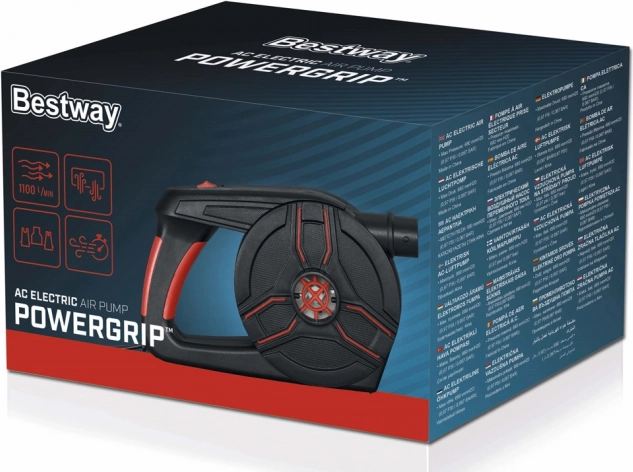 See Bestway elektripump ühendab tugeva jõudluse ja laiapõhjalise ühilduvuse. Komplektis on kolm universaalset ventiili, mis teeb selle sobivaks erinevatele täispuhutavatele toodetele, nagu madratsid, basseini mänguasjad jpm. Õhuvooluga 1100 l/min tagab pump kiire täitmise ning selle saab hõlpsalt lülitada tühjendusrežiimile mugavaks hoiustamiseks. Pump töötab kodusest 220 V pistikust ja saavutab rõhu 0,97 PSI, mis sobib ka suurematele, kõrgemat rõhku vajavatele esemetele.