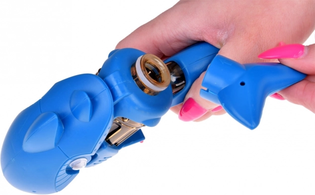 Kasutamine on väga lihtne: keerake saba maha, valage vesi paaki, sulgege uuesti ja vajutage punast päästikut. Läbipaistev paak võimaldab lastel igal ajal kontrollida, kui palju vett on alles. Hailiikuvad silmad lisavad mänguasjale lõbusa efekti iga liigutuse ajal.