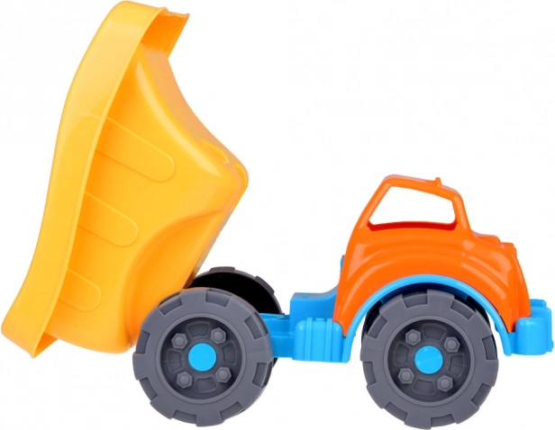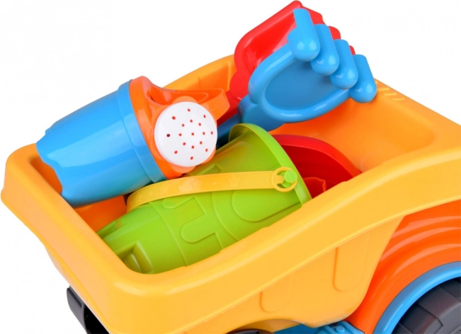 See suur liivakomplekt kallurkastiga autoga on ideaalne väikestele ehitajatele. Lapsed saavad ruumikas kastis vedada liiva, vett ja mänguasju ning luua losse ja kujundeid värviliste vormidega. Kaasas on ka ämber, kastekann, labidas ja rehad – kõik, mis on vajalik täiuslikuks lõbuks õues ja vees.