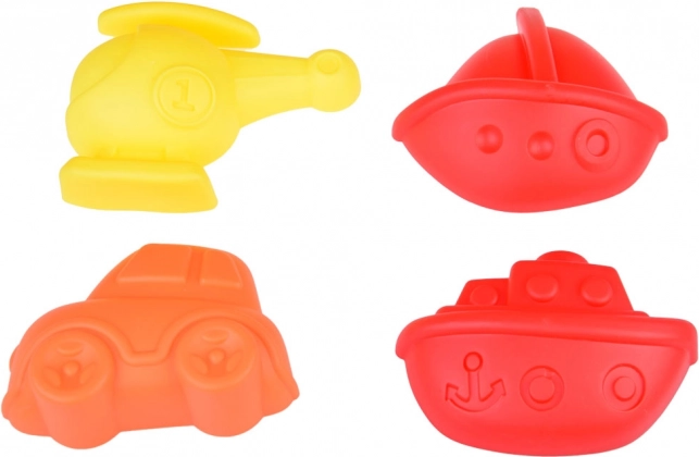 - Auto kallurkastiga, ämber, kastekann, labidas, rehad, 4 vormi (auto, helikopter, purjepaat, aurik)