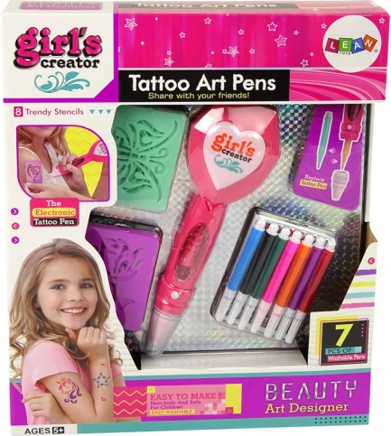 Avastage vahva ajaviide lastele alates 5. eluaastast – ajutiste tätoveeringute komplekt elektroonilise pastakaga, mis usutavalt matkib tätoveerimismasina tööd. Tänu spetsiaalsetele markeritele on tätoveeringud nahale ohutud ja kergesti mahapestavad, nii et lapsed saavad iga päev uusi motiive proovida.
