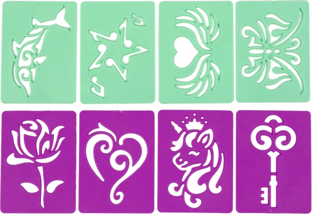 Piisab, kui valida lemmikšablooni motiiv, panna paika värv ja alustada loomist. Komplekt sobib suurepäraselt lastepidudeks, sõpradega veedetud pärastlõunaks ja koduseks meisterdamiseks – toetab peenmotoorikat ja kunstilisi oskusi.