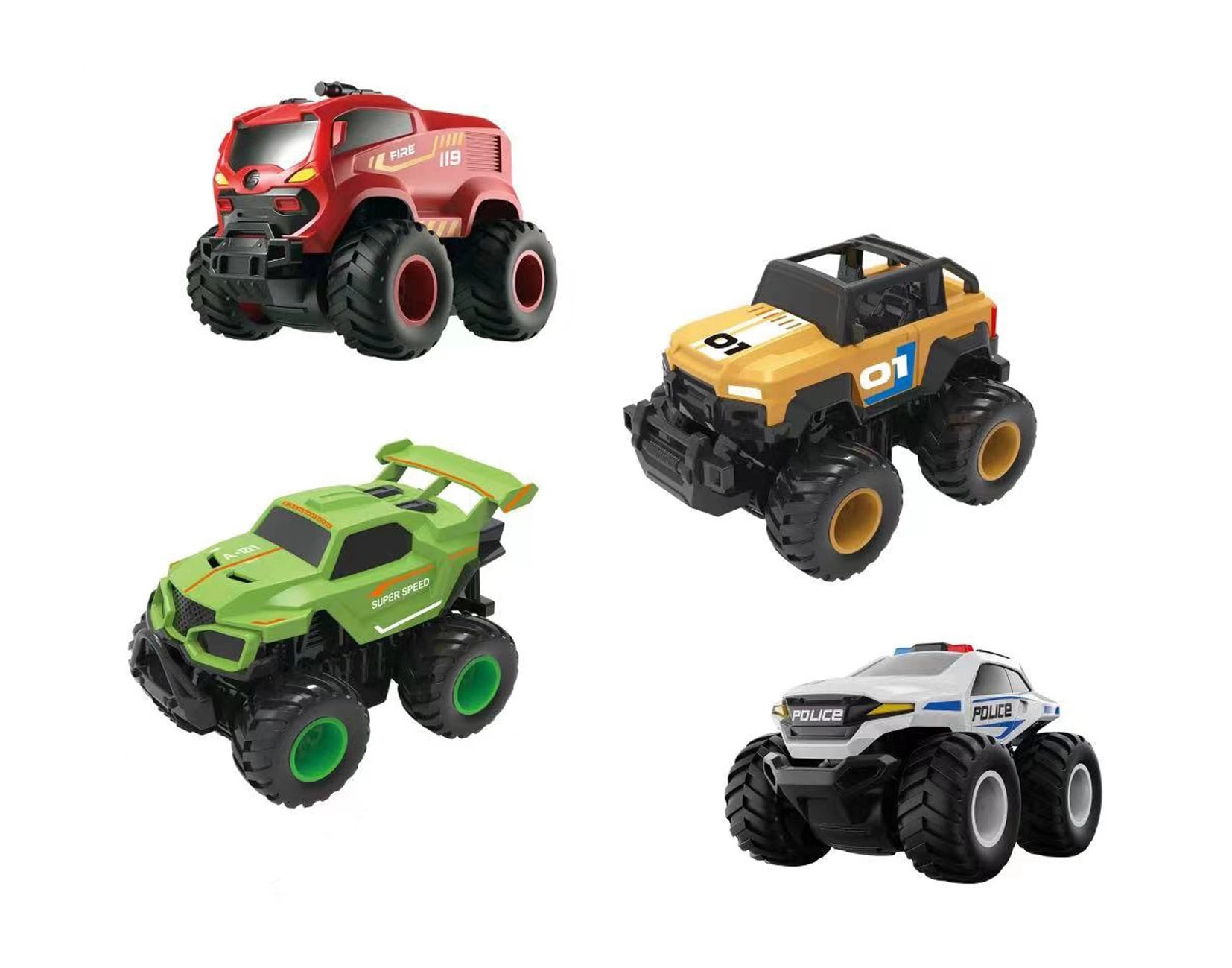 Valmistu lõbuks meie Big Foot auto nelja erineva disainiga. Iga auto pikkus on 13 cm, mistõttu sobib see suurepäraselt nii sise- kui ka välismänguks.