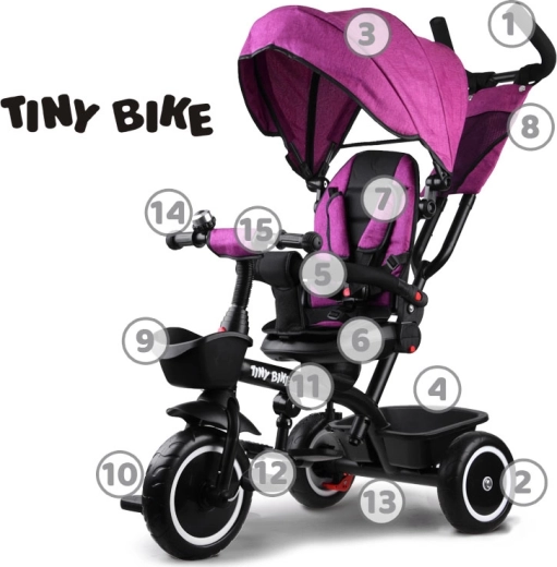 ECO TOYS roosa laste kolmerattaline pööratava istme ja varjuga