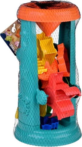 Komplektis on ka kastekann liiva tihendamiseks, mis ergutab laste loovust ja kujutlusvõimet. Erineva kujuga vormid võimaldavad ehitada losse ja kujundeid, toetades peenmotoorika arengut.