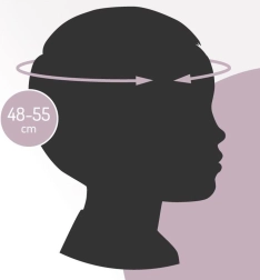 Praktiline kinnitus- ja reguleerimissüsteem 48–55 cm ning reguleeritavad lõuarihmad võimaldavad täpset sobivust kasvavale lapsepeale. Euroopa standardi EN-71 järgimine rõhutab usaldusväärset kaitset jalgratta, tõukeratta, jooksuratta või rullikutega sõites.