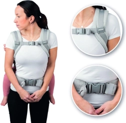 Lai puusavöö, pehmed õlarihmad ja kaetud pandlad jaotavad kaalu ühtlaselt ja suurendavad mugavust ka pikemal kandmisel. Eemaldatav kapuuts kaitseb lapse pead.