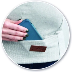 Tänu laiale puusavööl, polsterdatud õlarihmadele ja pehmetele pandlakaitsetele jaotub kaal ühtlaselt ning kandmine on mugav ka pikemalt. Eemaldatav kapuuts kaitseb pead tuule ja valguse eest, praktiline tasku mahutab pisiesemed ning rihmaotste kummid hoiavad üleliigsed rihmad kenasti peidus.