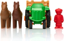 Komplektis on traktor ja kaks hobust, mida lapsed saavad kokku panna vastavalt oma ideedele. Farmeri figuur lisab lusti, stimuleerides kujutlusmängu ja sotsiaalsete oskuste arengut. Tänu erksatele värvidele ja lihtsale disainile sobib komplekt väikestele kätele.