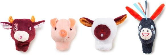Kujutage ette kõiki toredaid lugusid, mida saate nende armsate sõrmenukkudega lastele ette mängida. Komplektis on 4 talulooma – lehmake, põrsake, lambake ja eeslike. Igal sõrmenukul on oma ilme. Eesel Ignats naeratab, lambake ajab keele välja. Pange nukud sõrmede otsa ja etendus võib alata. Väiksemad lapsed eelistavad etendust vaadata, suuremad saavad juba ise kaasa lüüa ja oma loo esitada. See mäng arendab kujutlusvõimet ja kõnet.