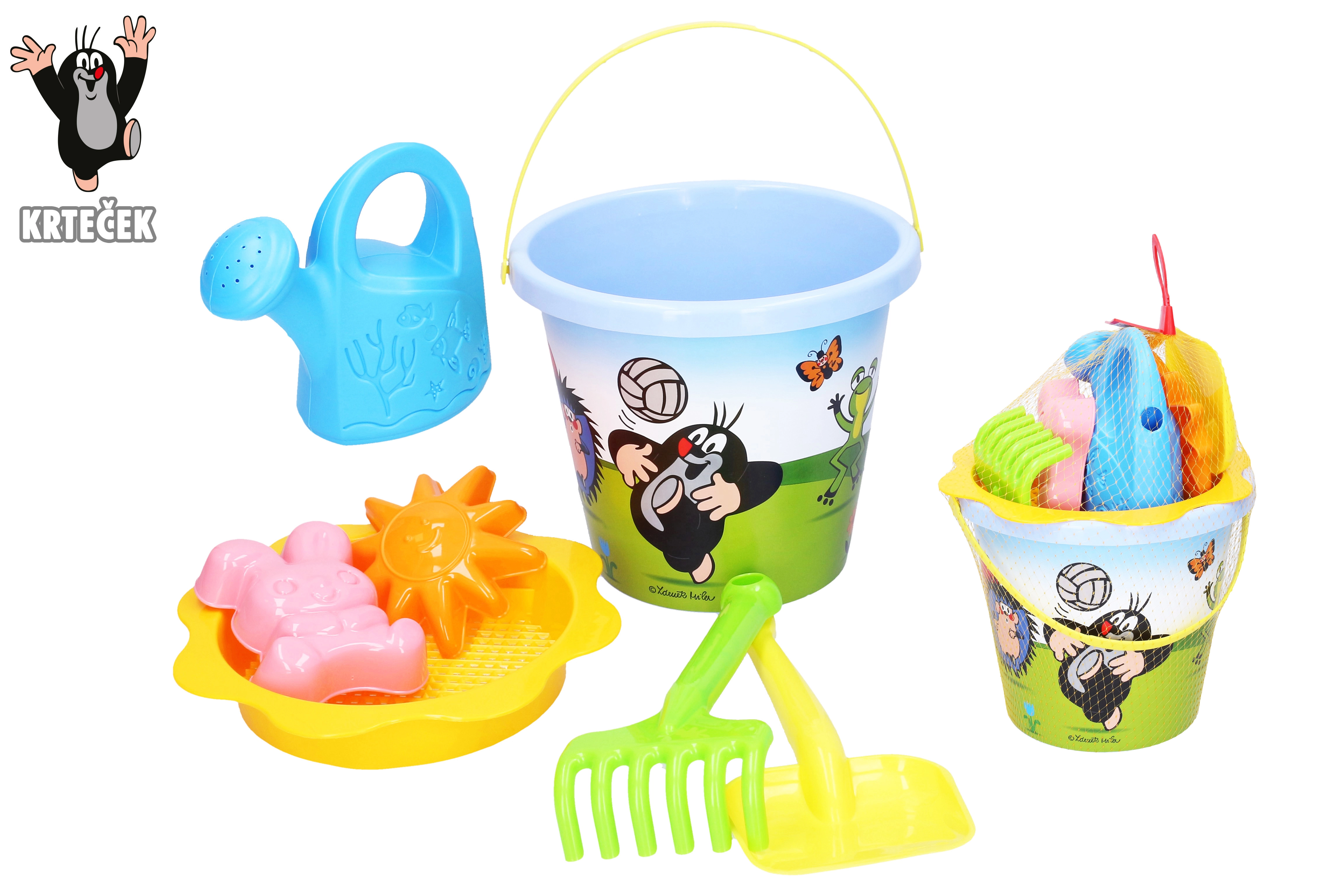 Avasta liivamängude võlu armastatud tegelasega KRTEK. Praktiline sinine komplekt sisaldab kõike, mida lapsed vajavad tundideks loovaks mänguks – alates 3,5 l ämbrist ja sõelast kuni vormide ja kastekannuni. Tänu tugevast plastist valmistamisele on komplekt kerge, ohutu ja vastupidav igapäevasele kulumisele.