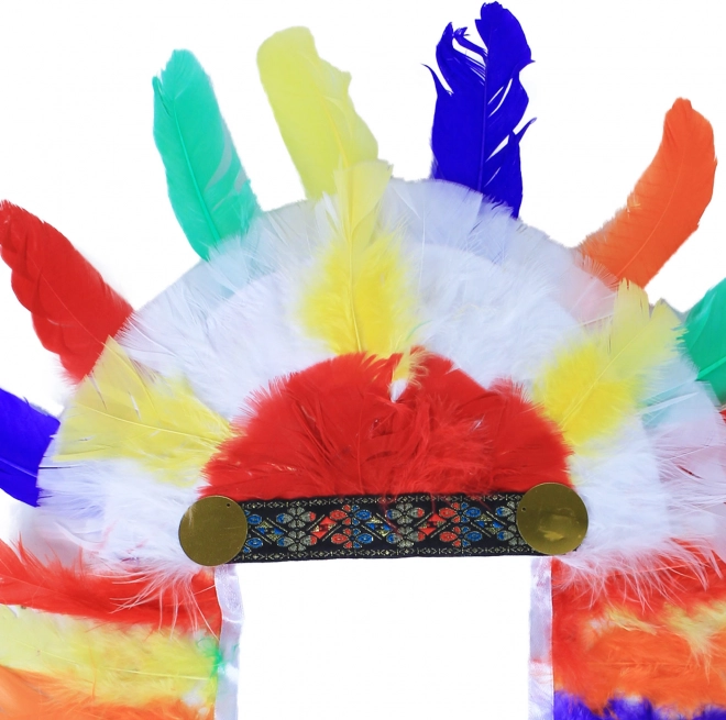 Kirjud suled punases, sinises, rohelises ja kollases toonis loovad pilkupüüdva karnevalilooki ja rõhutavad indiaanikostüümi meeleolu.