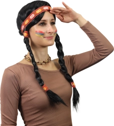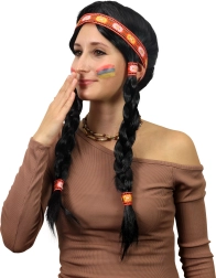 Stiilne karnevaliparukas kahekordsete patside ja dekoratiivse peapaelaga annab sinu kostüümile ehtsa indiaani ilme. Tänu pikkadele mustadele patsidele, dekoratiivsele peapaelale ja mugavale kandmisele sobib see ideaalselt karnevaliks, teemapidudeks ja cosplayks. Lintide värv võib erineda.