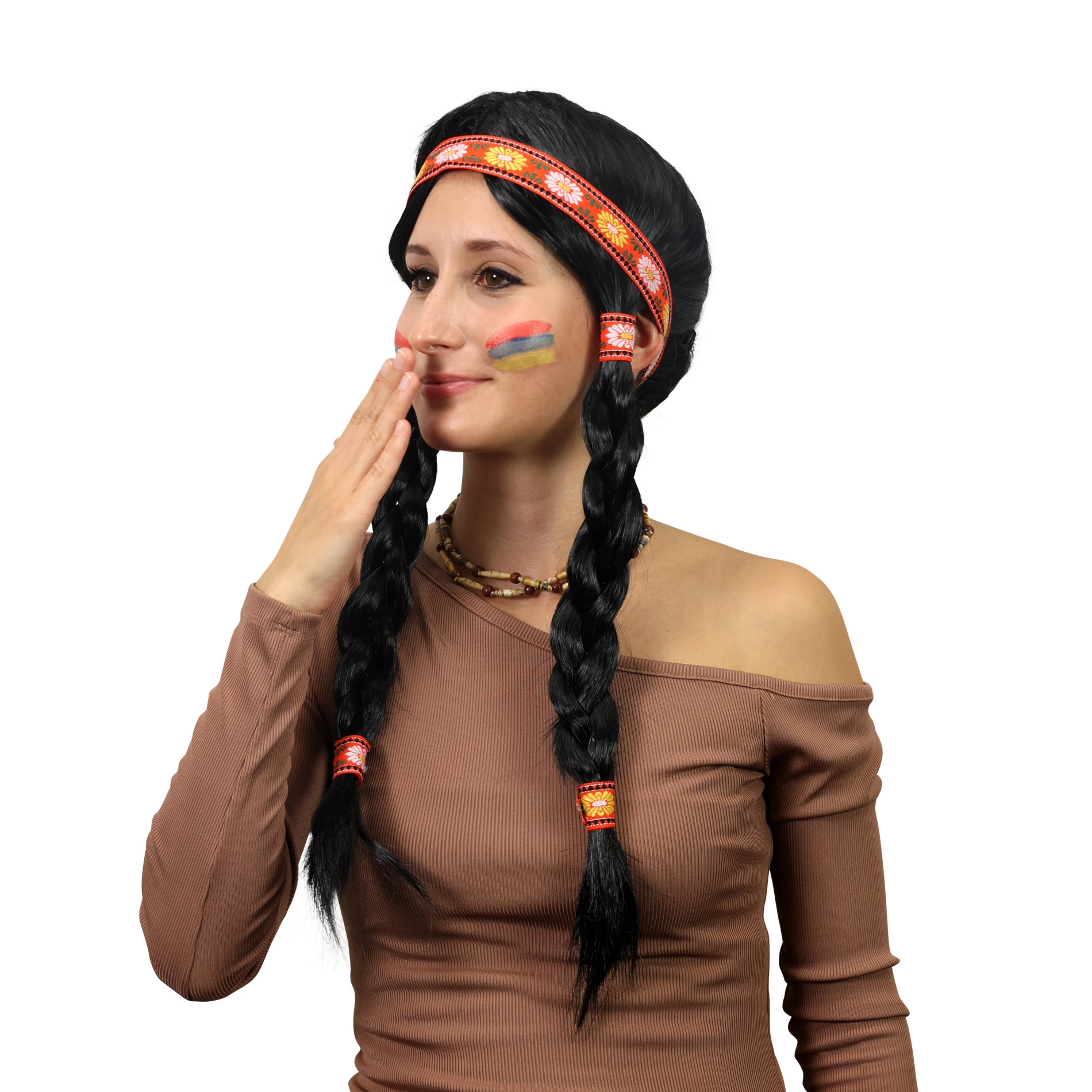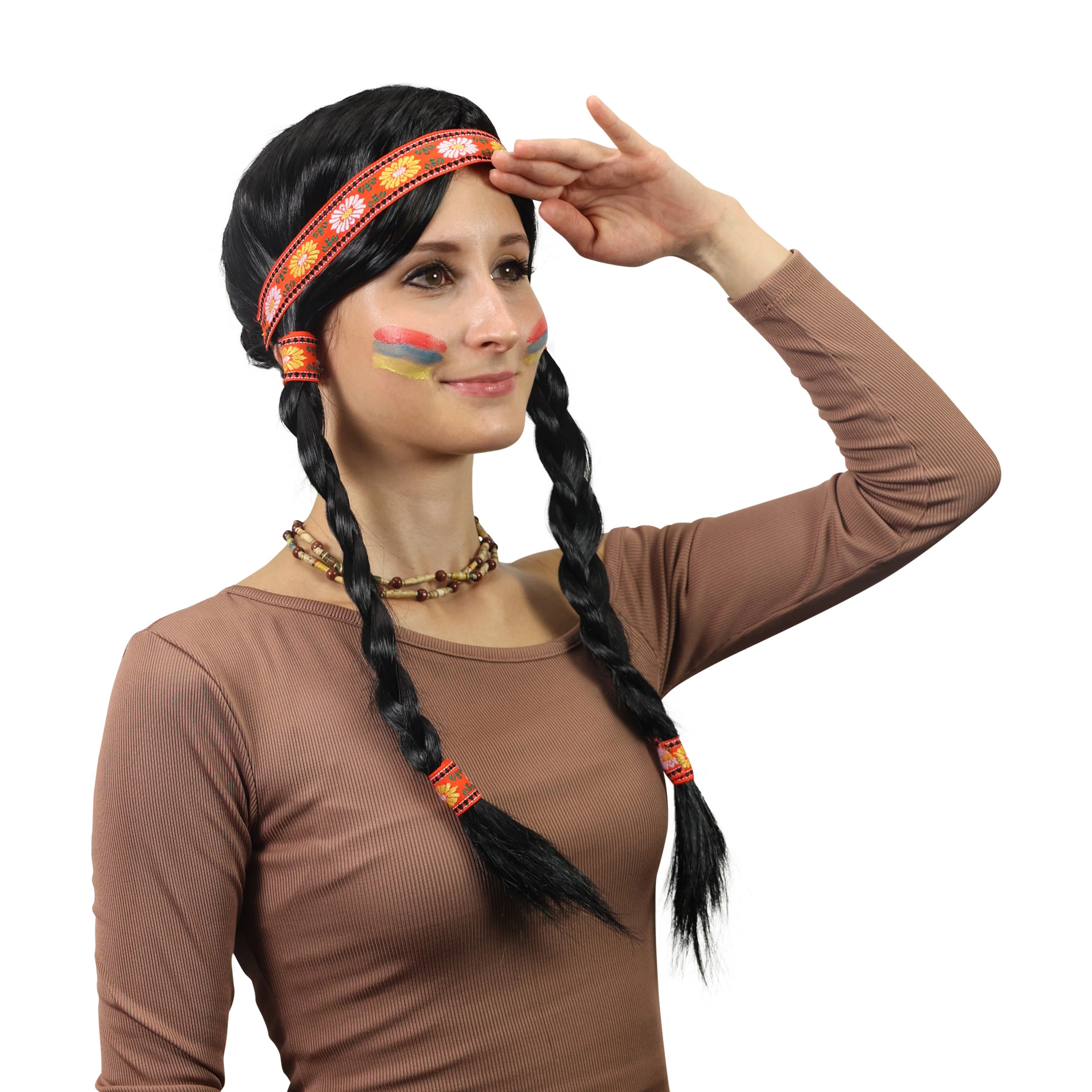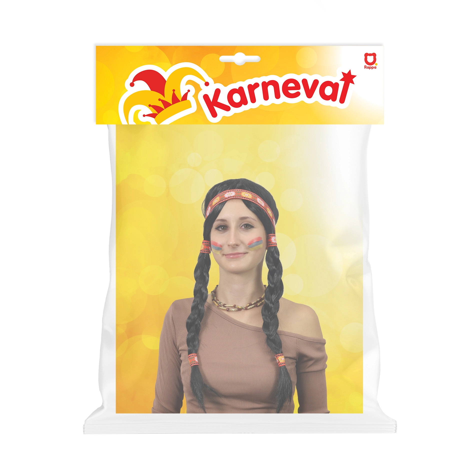 Muuda end hetkega ikooniliseks Ribana tegelaseks. See naiste kostüümiparukas pakub realistlikke pikki patse, mida kaunistavad mustrilised punased lindid ja peapael, mis rõhutavad indiaani kangelanna välimust. Parukas on mõeldud täiskasvanutele ning sobib kostüümideks karnevalil, pidudel ja fototeemadel.