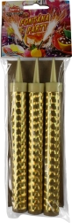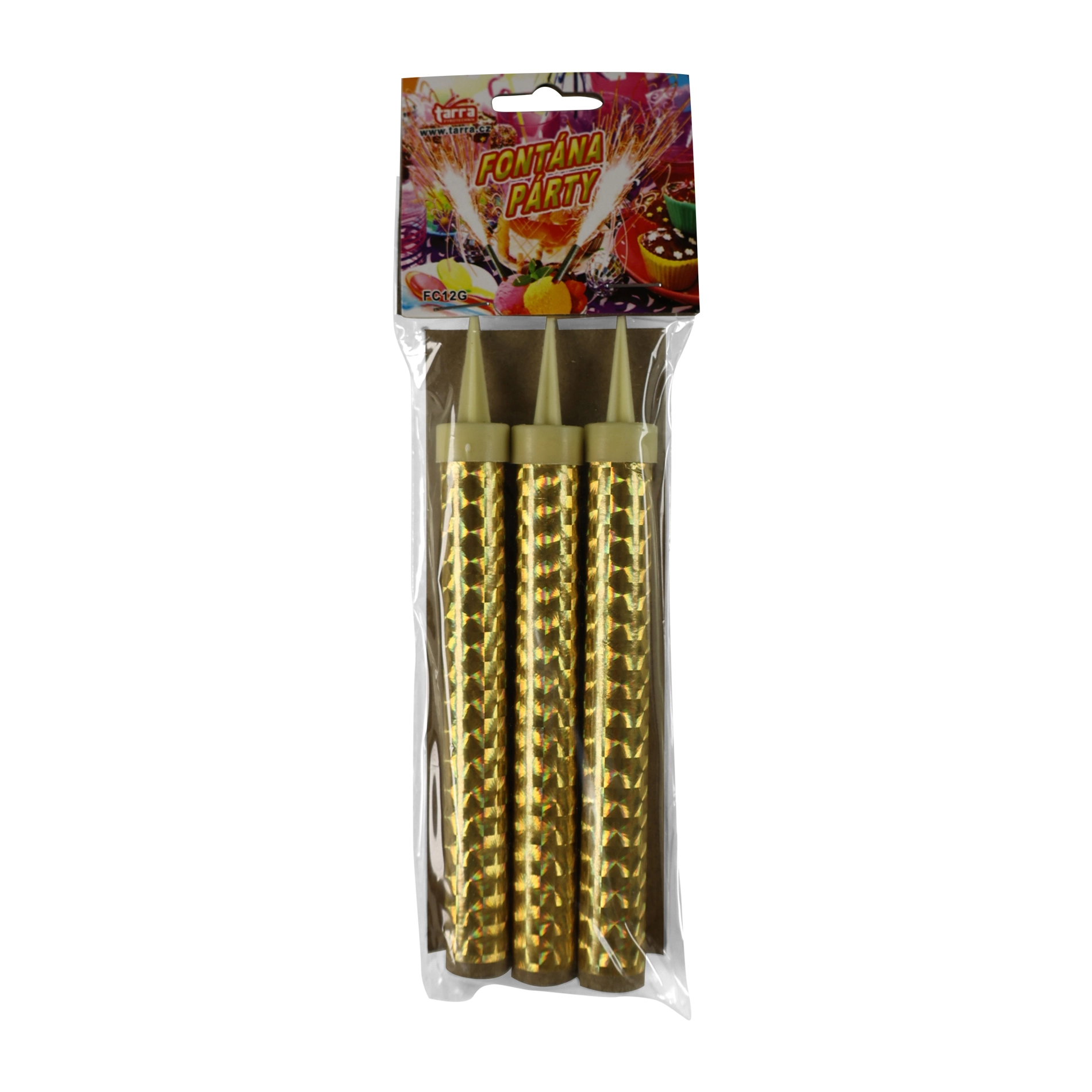 Stiilne pürotehniline kaunistus sünnipäevadeks, aastavahetuseks ja aiapidudeks. Iga fontään loob kuldsete sädemete efekti, mis lisab sündmusele pidulikkust. Praktiline 3 tükki pakend tagab piisava efekti mitmeks hetkeks.