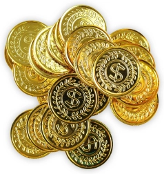 Pakkuge nii lastele kui ka täiskasvanutele rohkelt mängurõõmu kuldsete plastmüntidega, mis näevad efektsed välja ning on kerged, ohutud ja vastupidavad. Läikiv pind ja reljeefne dollarimotiiv annavad mängudele ja kaunistustele atraktiivse ilme.