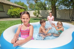 BESTWAY täispuhutav bassein on suurepärane valik aeda või hoovi. Tugev vinüülmaterjal tagab pika kasutusea ja vastupidavuse mehaanilistele kahjustustele ning UV-kiirgusele. Kaks eraldi täidetavat rõngast moodustavad tugevad ja mugavad seinad, mis annavad stabiilsuse nii laste mänguks kui ka täiskasvanute lõõgastumiseks.