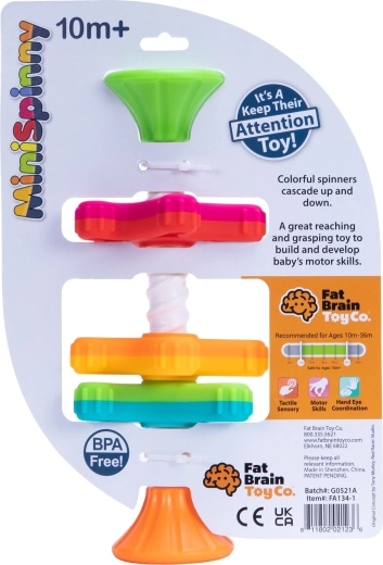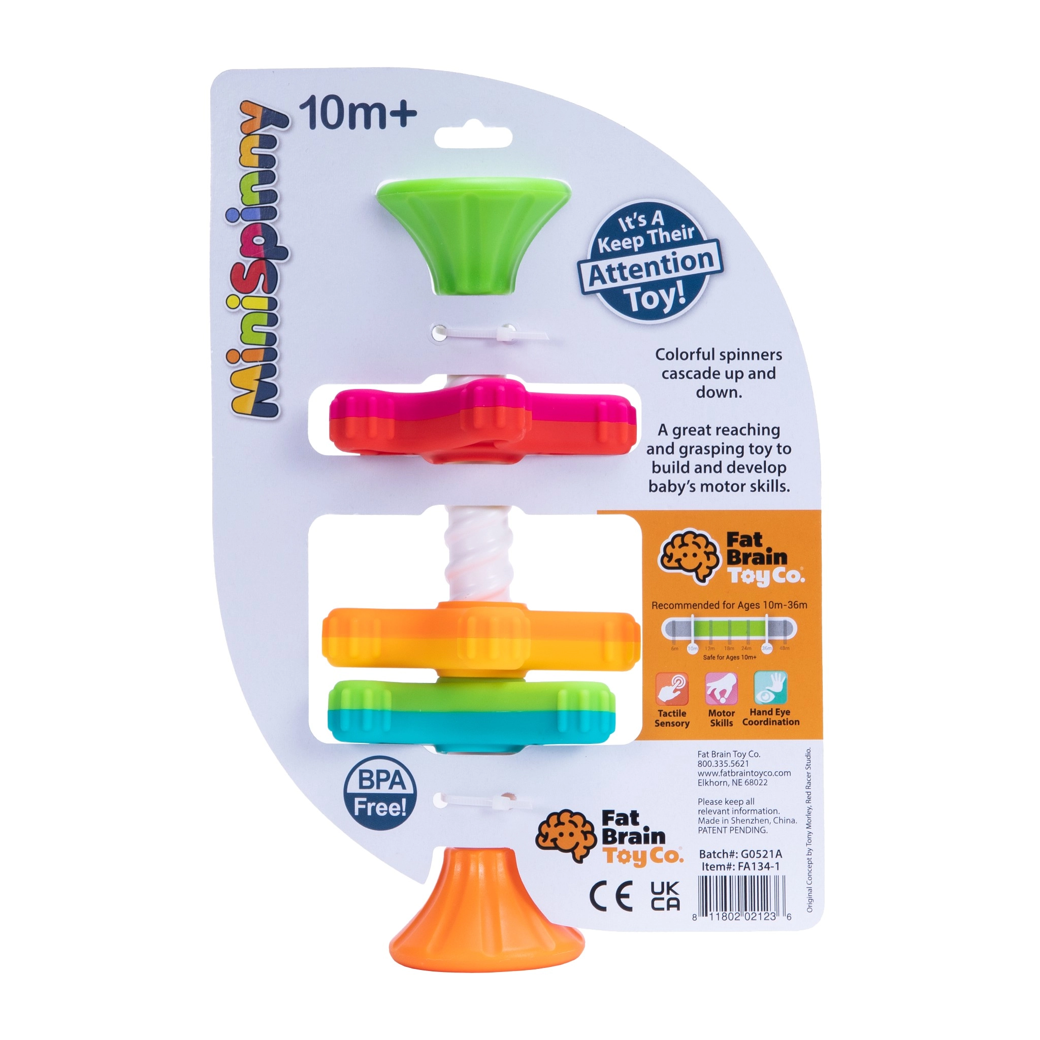 MiniSpinny on nutikas sensoormänguasi, mis köidab lapsi liikumise, värvide ja puudutuse kaudu. Kolm ketast erineva arvu “jalgadega” pöörlevad mööda spiraalset vart sujuvalt ja allapoole liikudes loovad köitva visuaalse efekti. Tekstuuriga pinnad kutsuvad avastama ning arendavad loomulikult kompimismeelt ja koordinatsiooni.