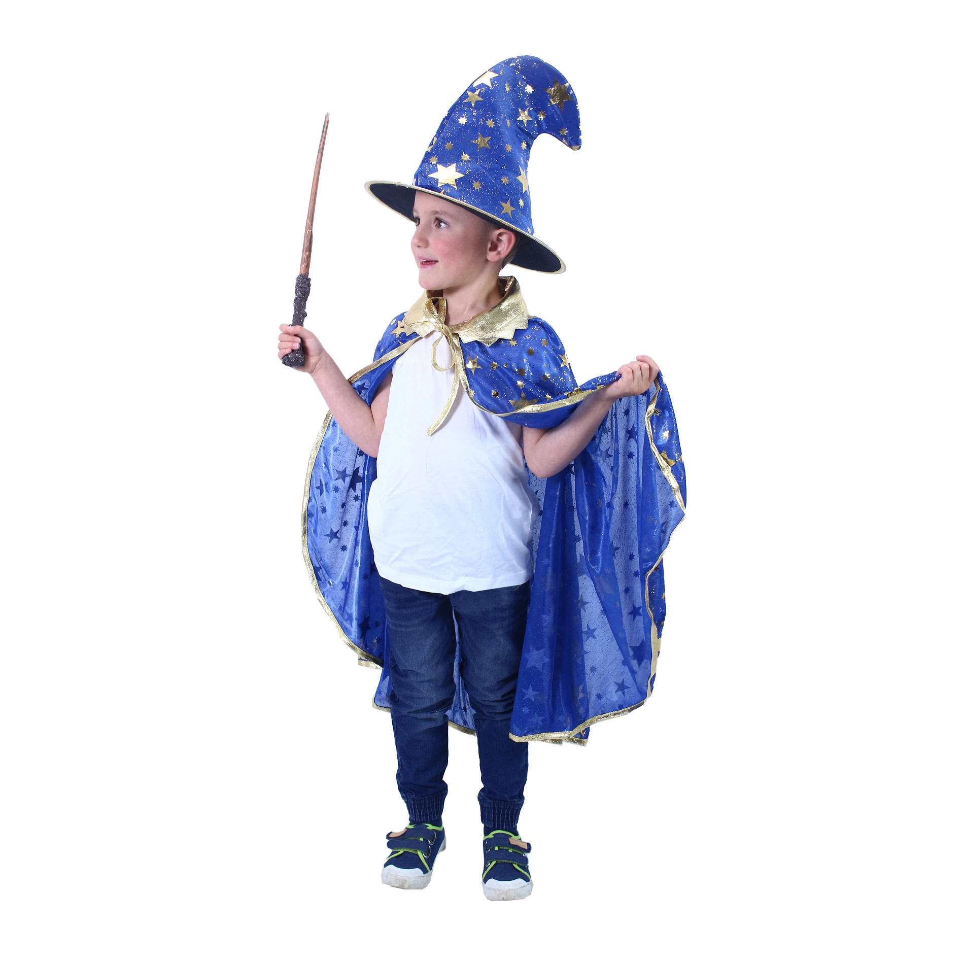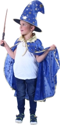 See eksklusiivne nõiakomplekt tagab, et ühelgi üritusel ei jää te märkamata! Sinine mantel on kaunistatud kuldse kantimisega ja tähtedega, mis lisavad efektsust. Kübar sobib suurepäraselt mantliga ja täiustab üldmuljet. Ideaalne Halloweeni pidustusteks või ükskõik millisele temaatilisele karnevalile.