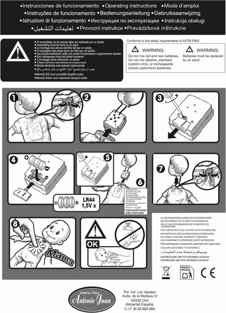 Õrna kõhuvajutuse järel teeb nukk armsaid pääksuvaid hääli. Funktsiooni toidavad 3× LR44 patareid (komplektis).