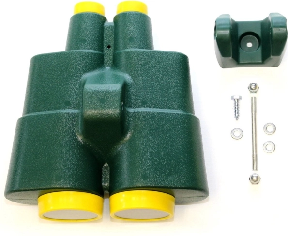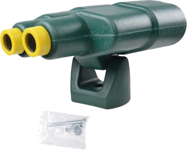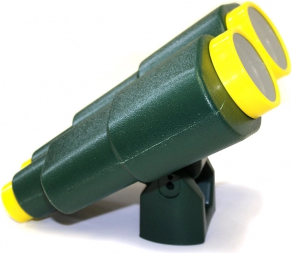 Mängubinokkel on valmistatud tugevast plastist, mis tagab selle vastupidavuse ja pika kasutusea õuemängudes.