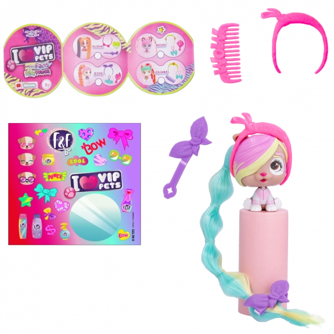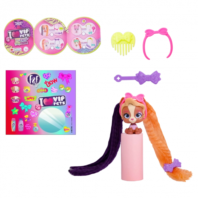 VIP Pets Mini Fans Bow Power on kollektsioon, mis toob 8 erinevat mini kutsikat, igal täiesti ainulaadsed juukseaksessuaarid. Need armsad kutsikad järgivad uusimat Bow Power trendi. Pakendist leiate: