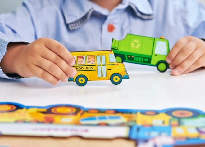 Iga pusletükk kujutab erinevat transpordivahendit või liiklusmärki, nii et lapsed omandavad kergesti uusi mõisteid ja laiendavad sõnavara.