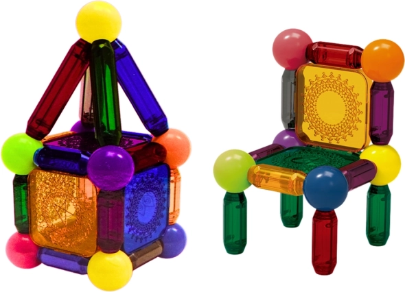 See laiendatav magnetehituskast innustab lapsi avastama kujundeid, struktuure ja värve. Detailide otstes olevad magnetid tagavad lihtsa ühendamise ja suure stabiilsuse, muutes ehitamise intuitiivseks ja lõbusaks. Paindlik ühendamine eri nurkade all toetab ruumilist ettekujutust ja loogilist mõtlemist.