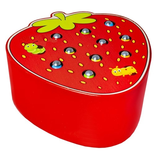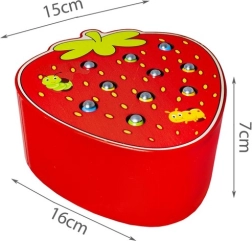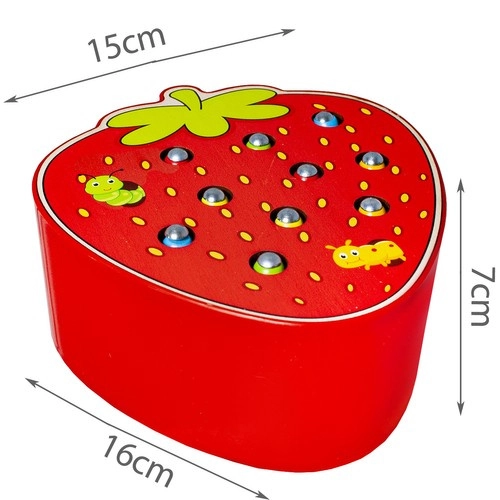 Lõbus puidust mäng maasika kujul, milles lapsed püüavad magnetpulga abil värvilisi ussikesi aukudest ja panevad need seejärel tagasi. Arendab peenmotoorikat, käe-silma koordinatsiooni ja kontsentratsiooni. Turvaline teostus kvaliteetsest puidust ning erksad värvid kutsuvad korduvalt mängima.