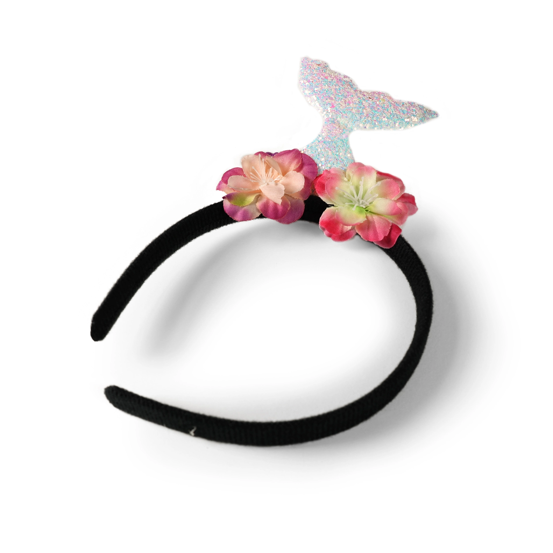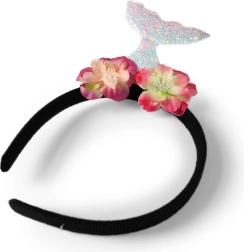 Lisa oma merineitsi kostüümile lummav sära. See sinine peapael on kaunistatud sätendava kalasaba ja elegantsete lilledega, luues võluva efekti igal peol või karnevalil.