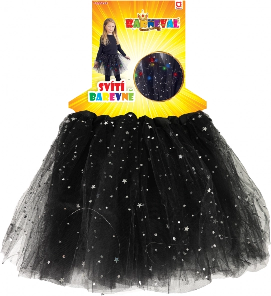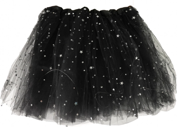 Võlu väikest moesõpra kauni musta tülliseelikuga, millel on sisseehitatud tuled! Kohev tüll, vöökohas satäänist kumm ja säravad litrid tagavad, et ta särab igal sündmusel. LED-tuled süttivad sisse lülitamisel ning patareid kuuluvad komplekti.