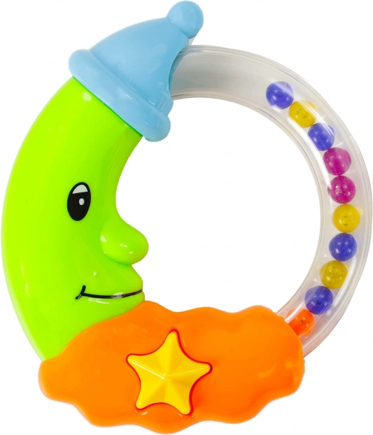 See värviküllane naeratava kuu kujuline kõrin on ideaalne esimene mänguasi pisikestele kätele. Läbipaistev rõngas värviliste kuulidega tekitab liikumisel meeldiva heli, mis köidab beebi tähelepanu ja toetab loomulikku uudishimu. Kontrastsed värvid ja armas disain pakuvad meelelahutust ning aitavad samal ajal arendada meeli.