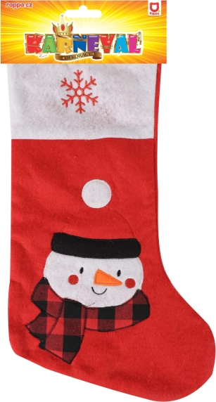 See punane jõulusokk on kaunistatud lõbusa lumememme kujutisega, muutes selle täiuslikuks dekoratsiooniks pühadepeoks. Ideaalne maagilise jõulumeeleolu loomiseks.