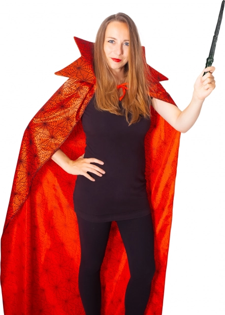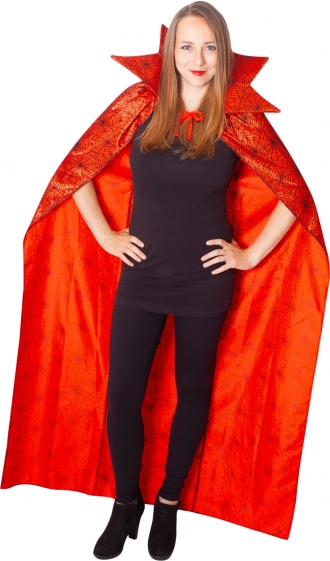 Muuda end hetkega salapäraseks tegelaseks – punane mantel ämblikuvõrgu mustri ja kõrge kraega on ideaalne valik Halloweeni, teemaõhtute, teatrilavastuste ja maskiballide jaoks. Materjali läikiv efekt ja silmatorkav värv tõmbavad pilke ja toovad sinu kostüümi esile.