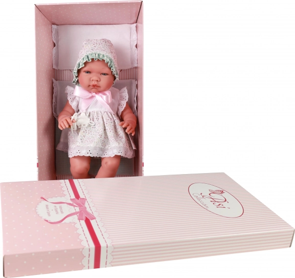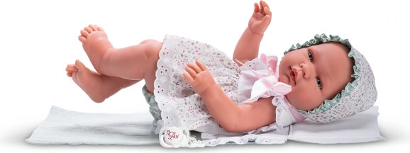 Detailne näoilme, mittepilgutavad sinised akrüülsilmad ja liimitud ripsmed annavad nukule María autentse ilme. Täisvinüülkeha on tugev ja vastupidav igapäevaseks mänguks.