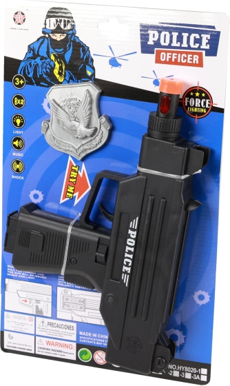 Varustage väike politseinik ägeda automaatpüstoliga, mis pakub valgust ja heli veelgi autentsemaks mängukogemuseks. Tänu silmatorkavale oranžile otsikule on selge, et tegu on turvalise mänguasjaga, ning komplekti kuulub ka politseimärk täieliku rolli jaoks.