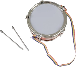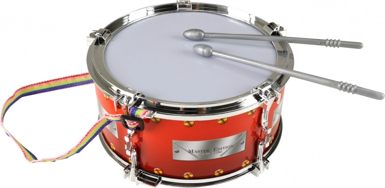 Laste trumm pulkadega on suurepärane valik igale noorele muusikule. Värvilise õlarihma ja kahe pulgaga saab sellest ideaalne pill kaasavõtmiseks. Trummiga võivad lapsed liituda puhkpilli- või marssivorkestri rütmiga või harjutada kodus.